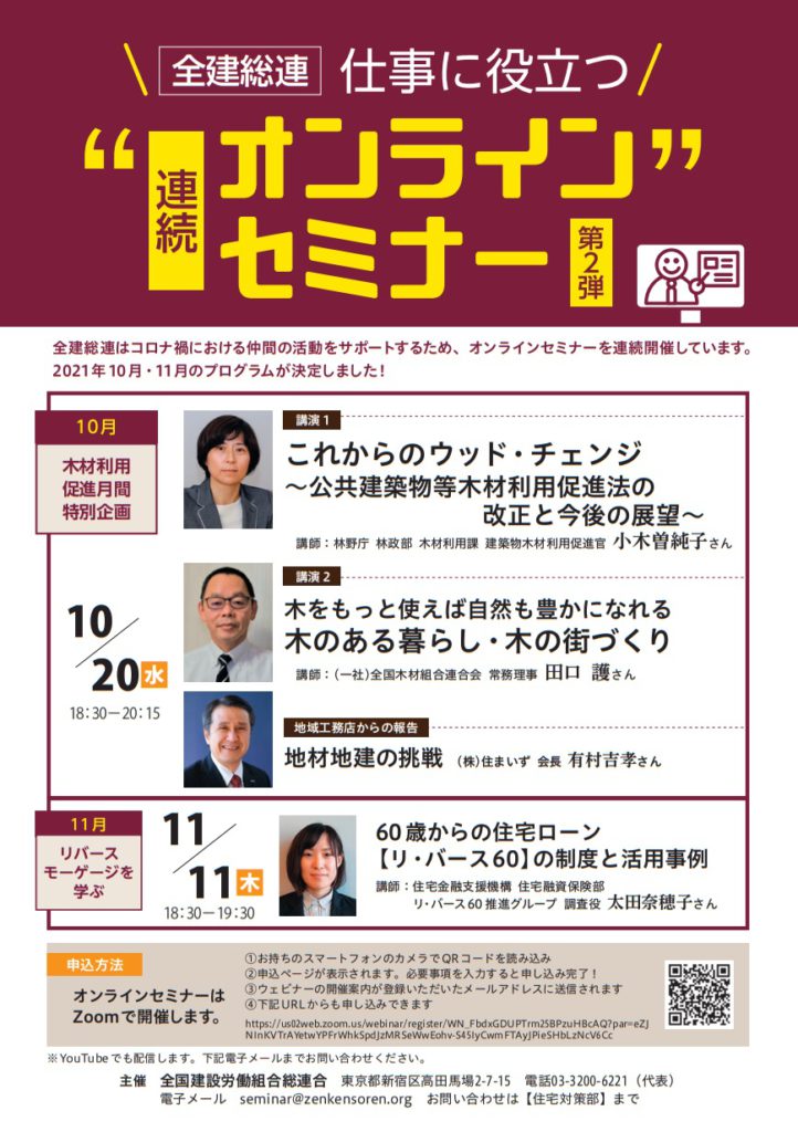 全建総連は、コロナ禍における仲間の活動をサポートするため、「オンラインセミナー」を連続開催しています。