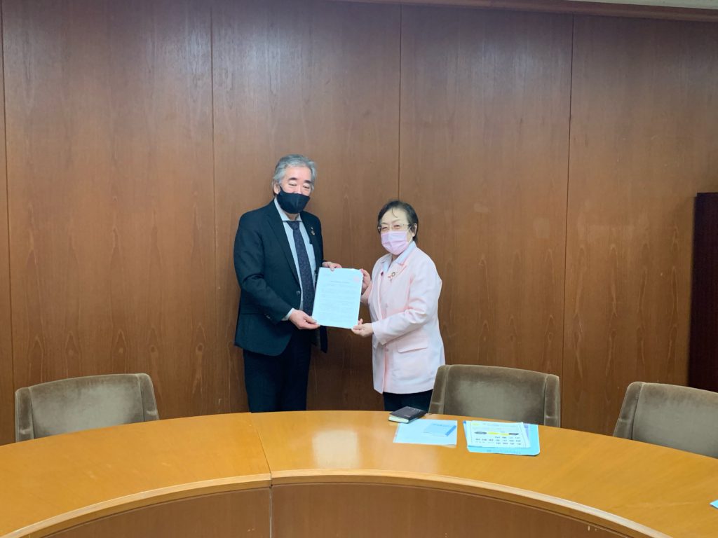 全建愛知からは鈴木貴雄執行委員長はじめ四名、新政あいち県議団からは富田昭雄団長はじめ5名、名古屋民主市会議員団からは鵜飼春美団長はじめ4名が参加、各議員団とは定期的に懇談・意見交換の場を設けてきましたが、新型コロナウイルス感染症の感染拡大が進む状況を考慮し、一昨年に引き続きそれぞれの議員控室を訪問、議員団に向けて政策要望書を渡すかたちで行いました。