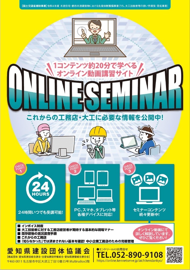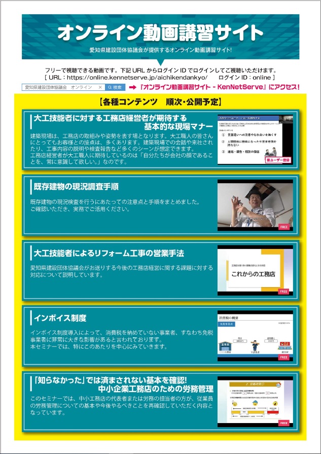 愛知県建設団体協議会が提供する、「オンライン動画講習サイト」になります。