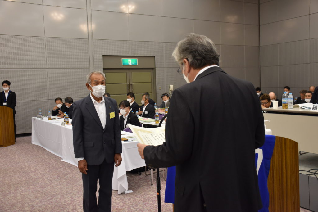 各表彰等(下記参照)が行われた後、役員改選が承認され、「さあ行こう!組合の魅力を発信し、15,000人の組合をめざそう!『建設国保』『組合員の命・暮らし・仕事』を守ろう!担い手を確保し、育成しよう!」をメインスローガンに掲げ採択後、最後に団結ガンバロウで、第51回定期大会は幕を閉じました。