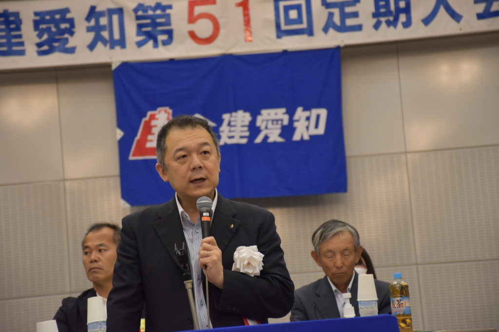 村上賃金対策部長より、「愛知県内での公契約条例制定自治体数は、19自治体になりますが、労働報酬下限額が明示された条例は2自治体(豊橋市・豊川市)に留まり、17自治体が理念型での条例制定となっています。我々の求める労働報酬下限額が明示され実効性の担保された公契約条例を目指した取り組みが求められます。建設業の働き方改革の取り組みでは、猶予期間を終える最終年度を迎え、業界一体で一斉にその対応を急いでおり、組合員に向けた働き方改革関連法の周知を進めていきます」
