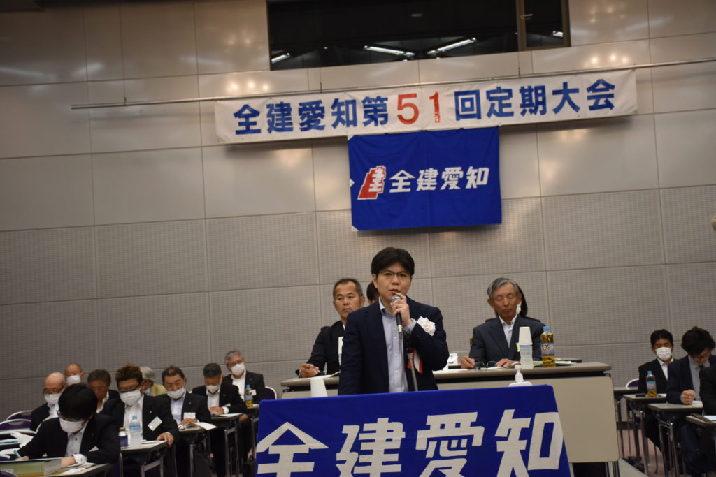 曾我技術対策部長より、「若年技能者の育成は喫緊の課題です。2023年度も全建愛知では、未来の建設職人を育成するため、厚労省/人材確保等支援助成金等を活用し、学校教育等へ参加していきます。また、自治体での技能者に対する表彰に該当者を推薦していきます」