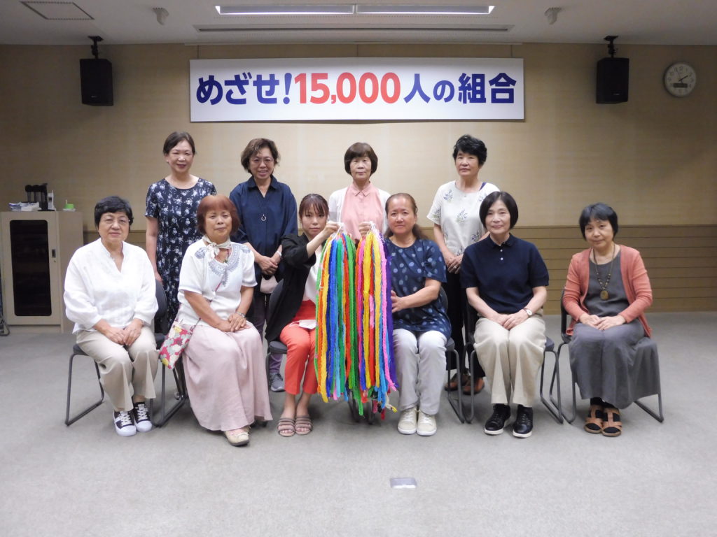 女性組合員さん・組合員の奥さん他、多くの方々に作製していただいた折り鶴は、4月13日(木)と7月13日(木)の両日、全建愛知会館にて主婦の会幹事の皆さんのボランティアで折り鶴のつなぎ作業にご協力いただきました。また、献水も主婦の会役員のご協力があり、長崎と広島に送ることができました。ありがとうございました。
