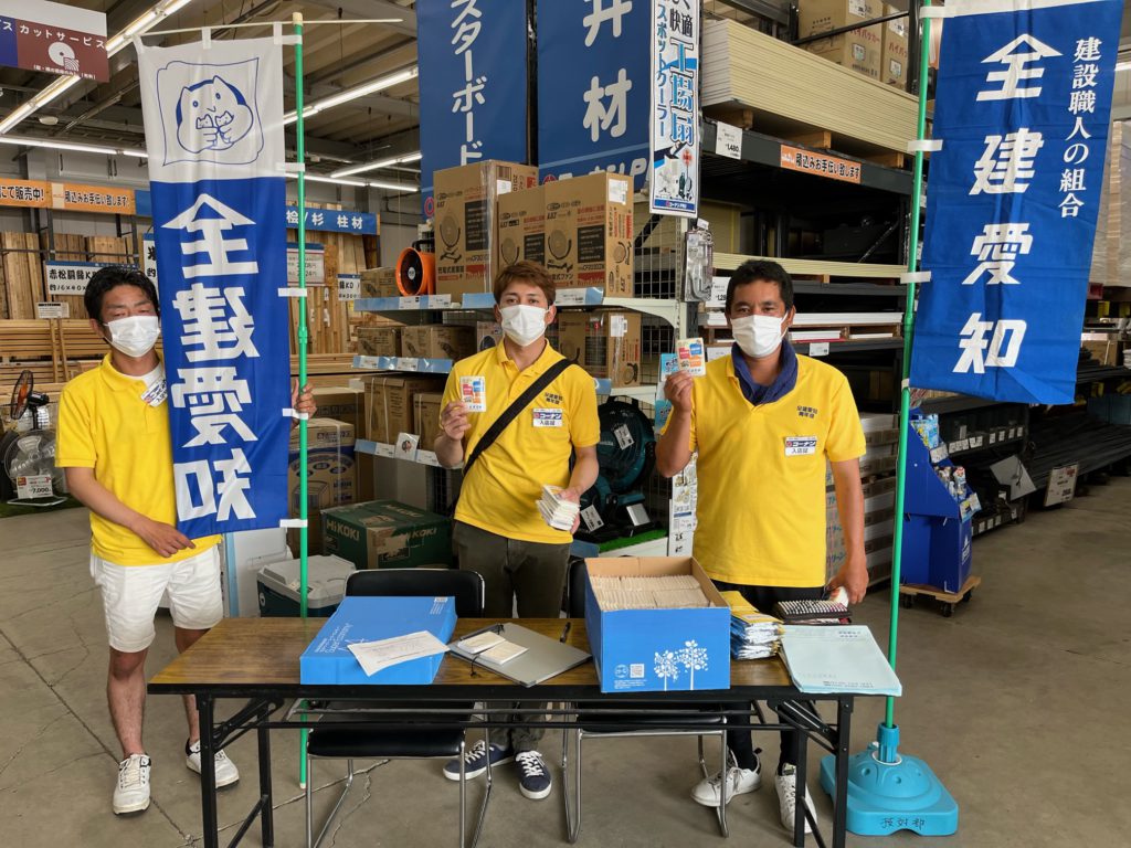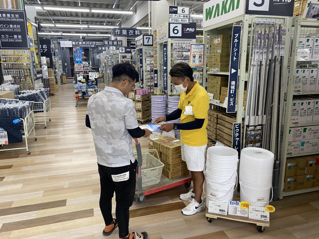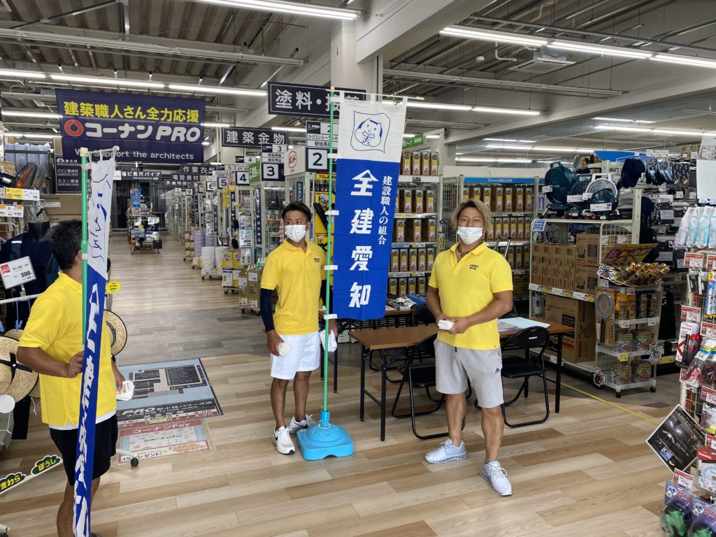 午後は、コーナンPRO4店舗(一宮店・小牧店・新小牧パワーズ店・熱田四番町店)に分かれ、組合のPR活動(ティッシュ配り約400個)を行いました。