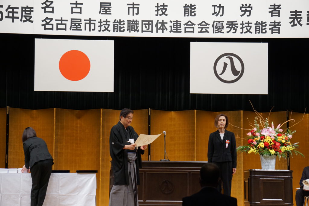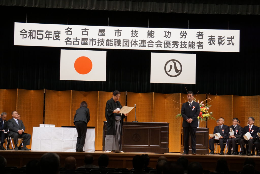 11月23日(勤労感謝の日)、名古屋市公会堂(昭和区鶴舞)で「名古屋市技能功労者表彰式」が行われました。