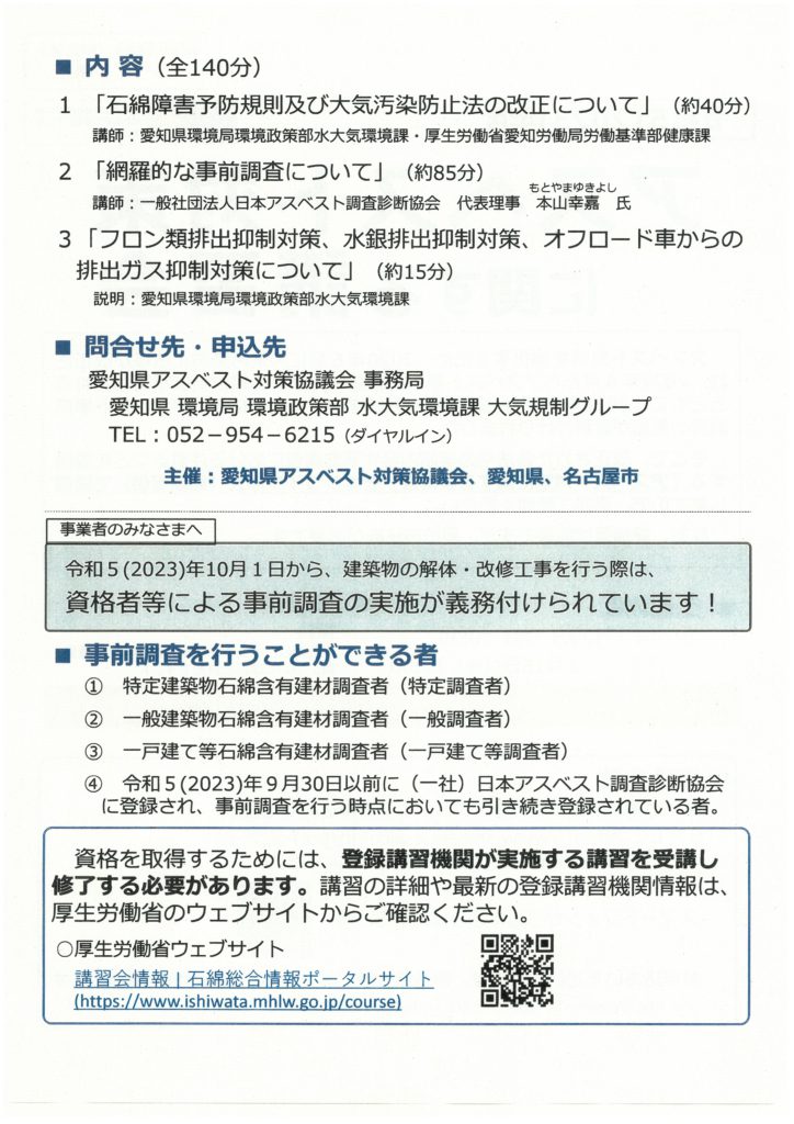 「アスベスト対策に関する講習会」開催