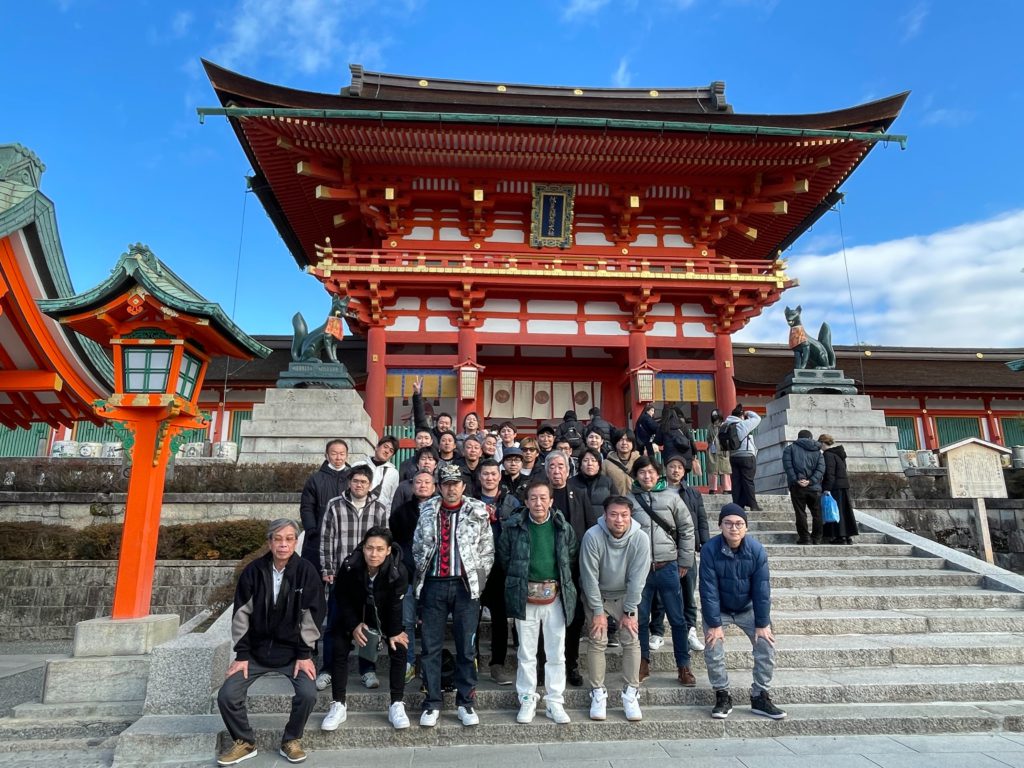 2日目は二日酔いの中、車内で乾杯が始まり京都観光へ。歴史的建造物を十分に堪能して、昼食会場へ。どれだけ食べてもゼロカロリーの湯豆腐を美味しくいただきました。