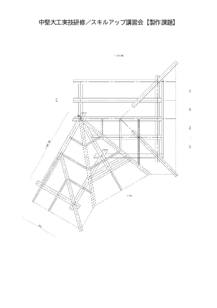 規矩術と「基本・隅木と谷木の屋根組」を製作、若年技能者も作業分担により作業し学べます。