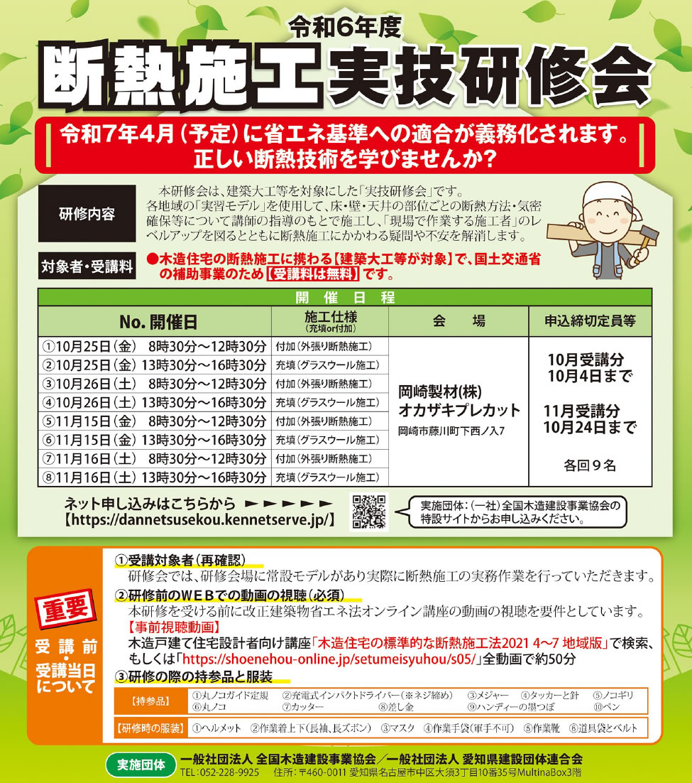 令和7年4月(予定)に省エネ基準への適合が義務化されます。正しい断熱技術を学びませんか?