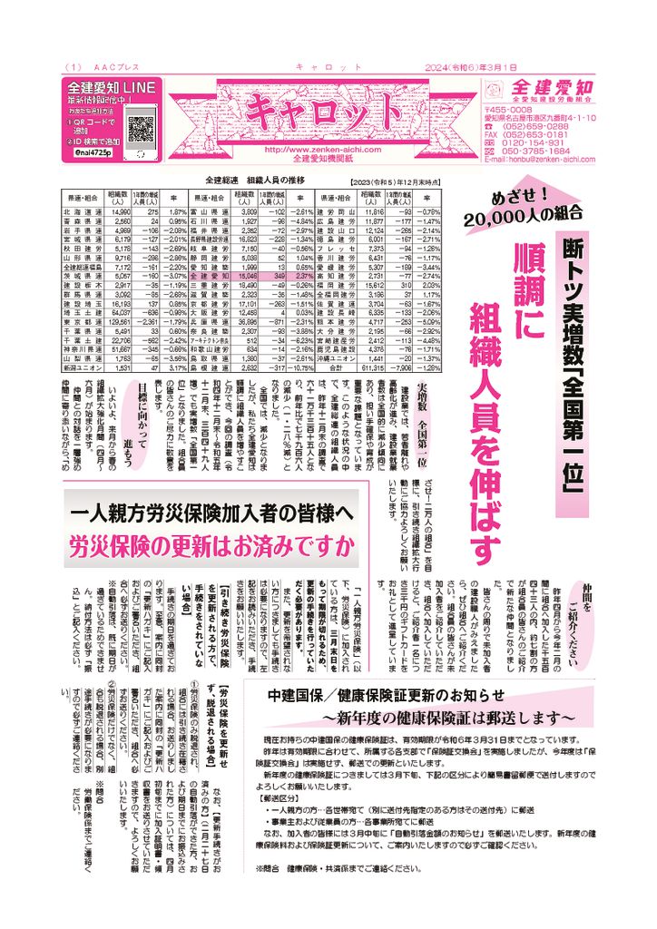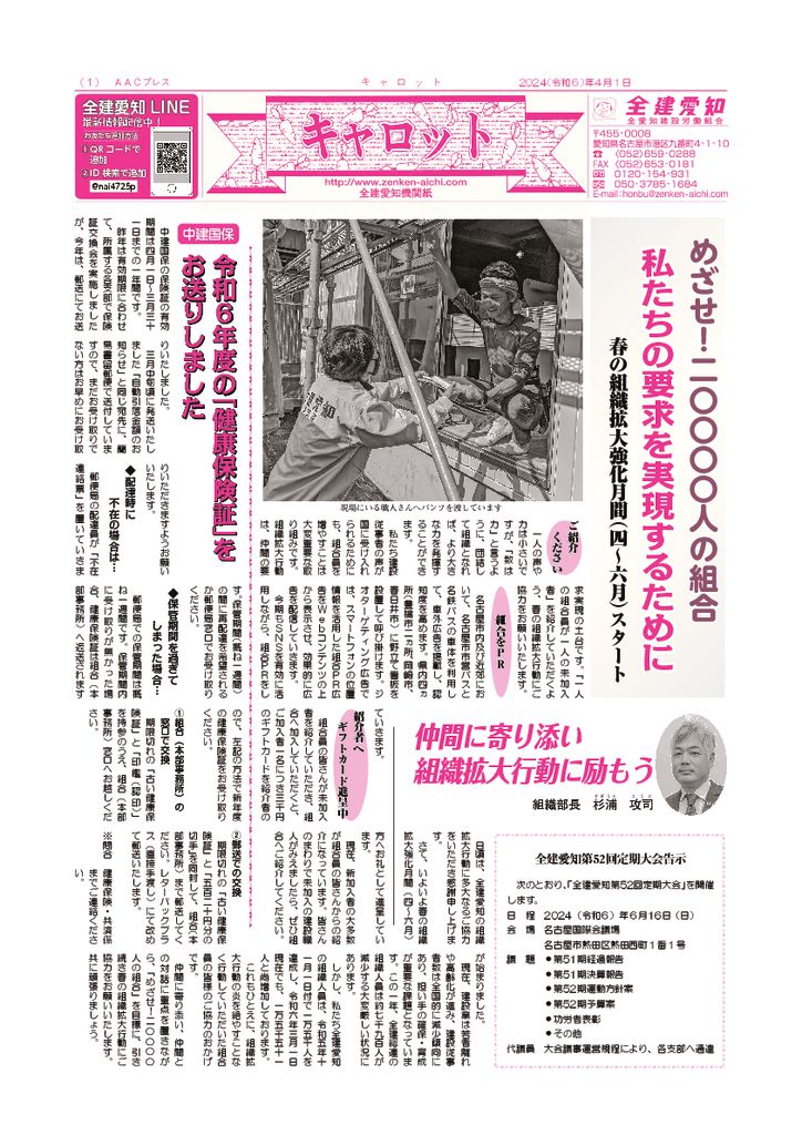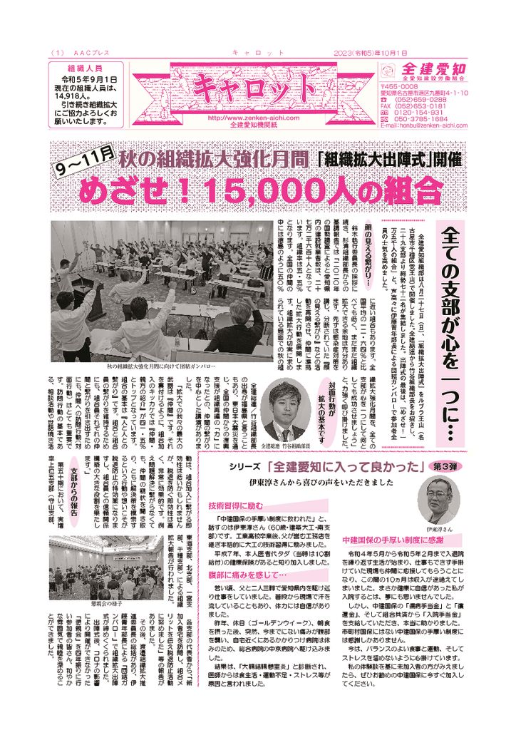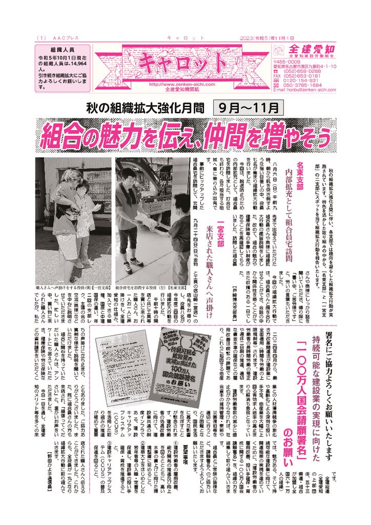 1面 めざせ!20,000人の組合