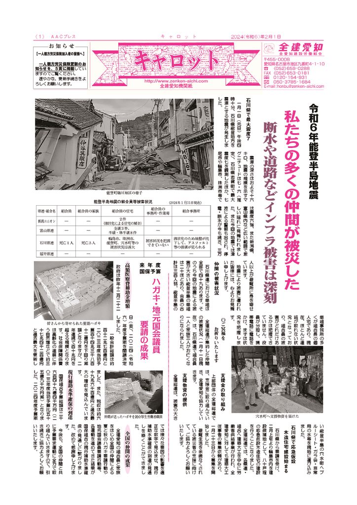 1面 令和6年能登半島地震他