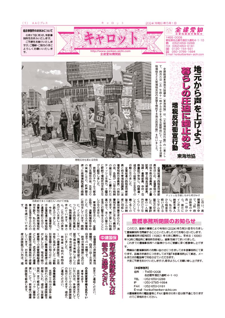 1面 増税反対街宣行動他