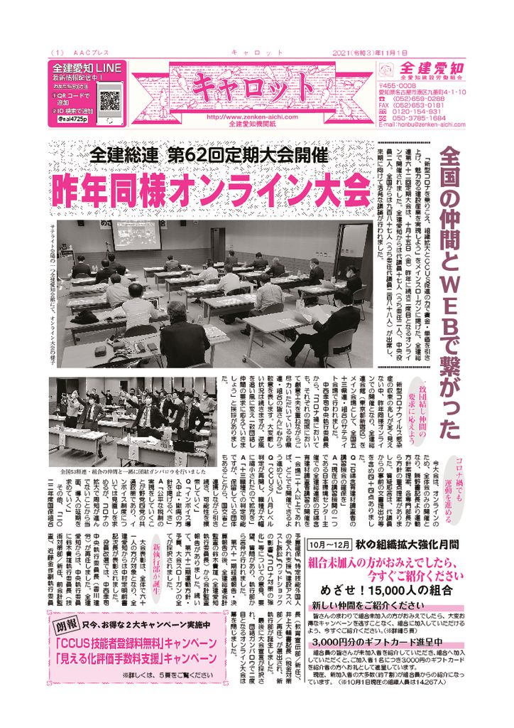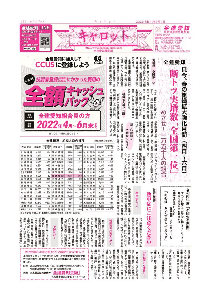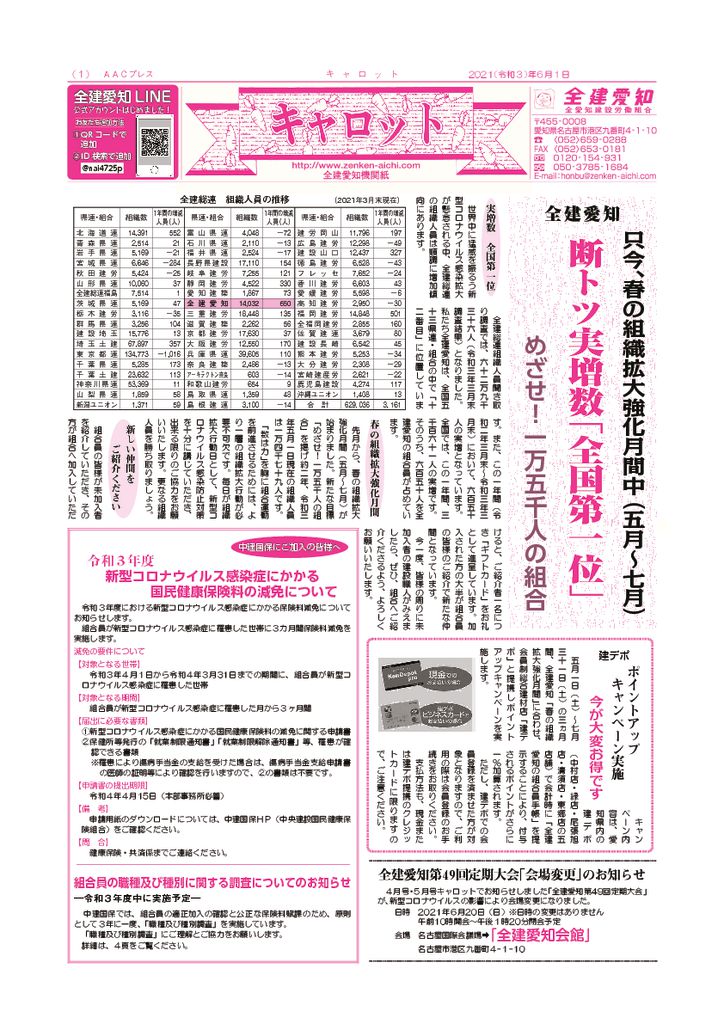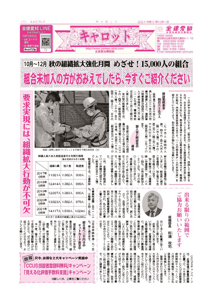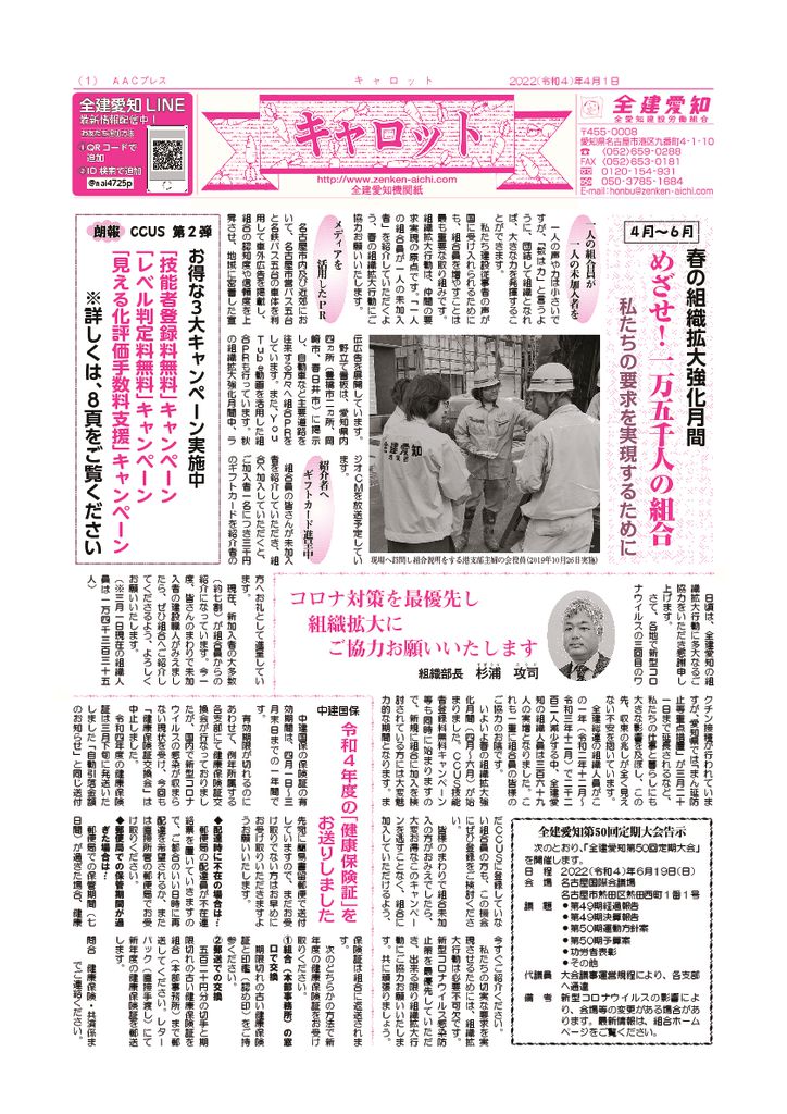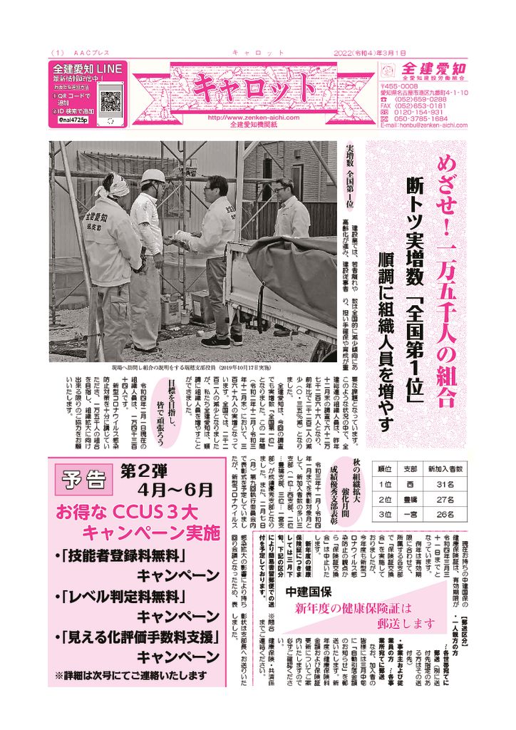 1面 春の組織拡大強化月間他