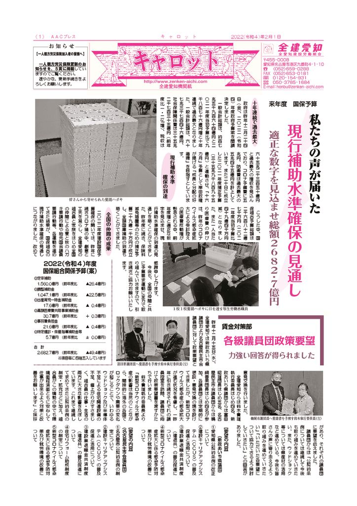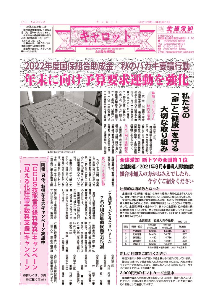 1面 秋のハガキ要請行動報告他