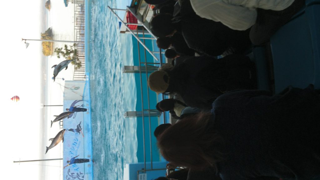 大水槽では、ジンベイザメのお出迎えに「ほらほら来たよ」と皆さん写真撮影。迫力のイルカ・アシカショーでは、大人も子供も歓声を上げていました。