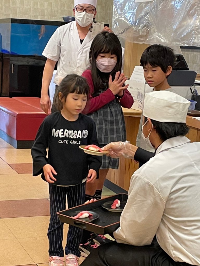 希少部位が食べられるジャンケン大会もあり、大人から子供まで皆さん必死になって、すごく盛り上がりました。お好みのお寿司も食べることができたので、お腹いっぱいになりました。