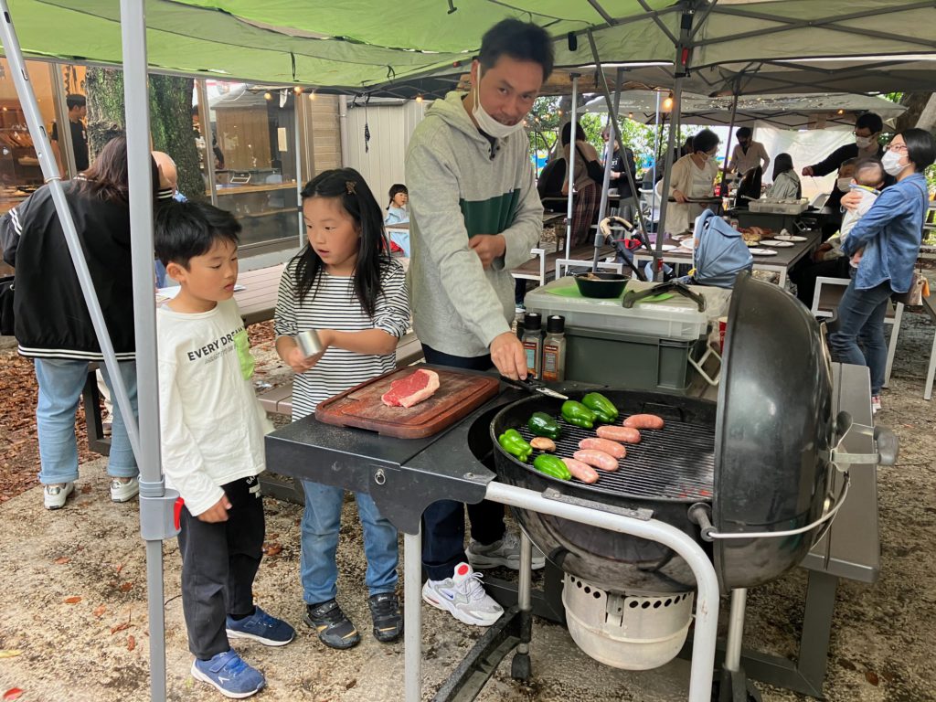 前日からの雨も降り止み、正午、本格的バーベキューのスタートです。