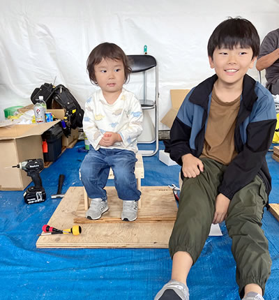 完成したイスを手に「できた!」と嬉しそうに笑う子どもたちや、それを見守る保護者の方々の笑顔があふれ、こちらまで温かい気持ちになりました。