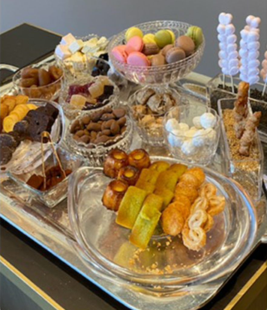 最後のデザートはワゴンで運ばれてきて、好きなお菓子を選んで食べるという、スィーツ好きの私にとっては夢のようなワゴンで、お腹がいっぱいだったにもかかわらず、ほぼ全種類食べてしまいました。